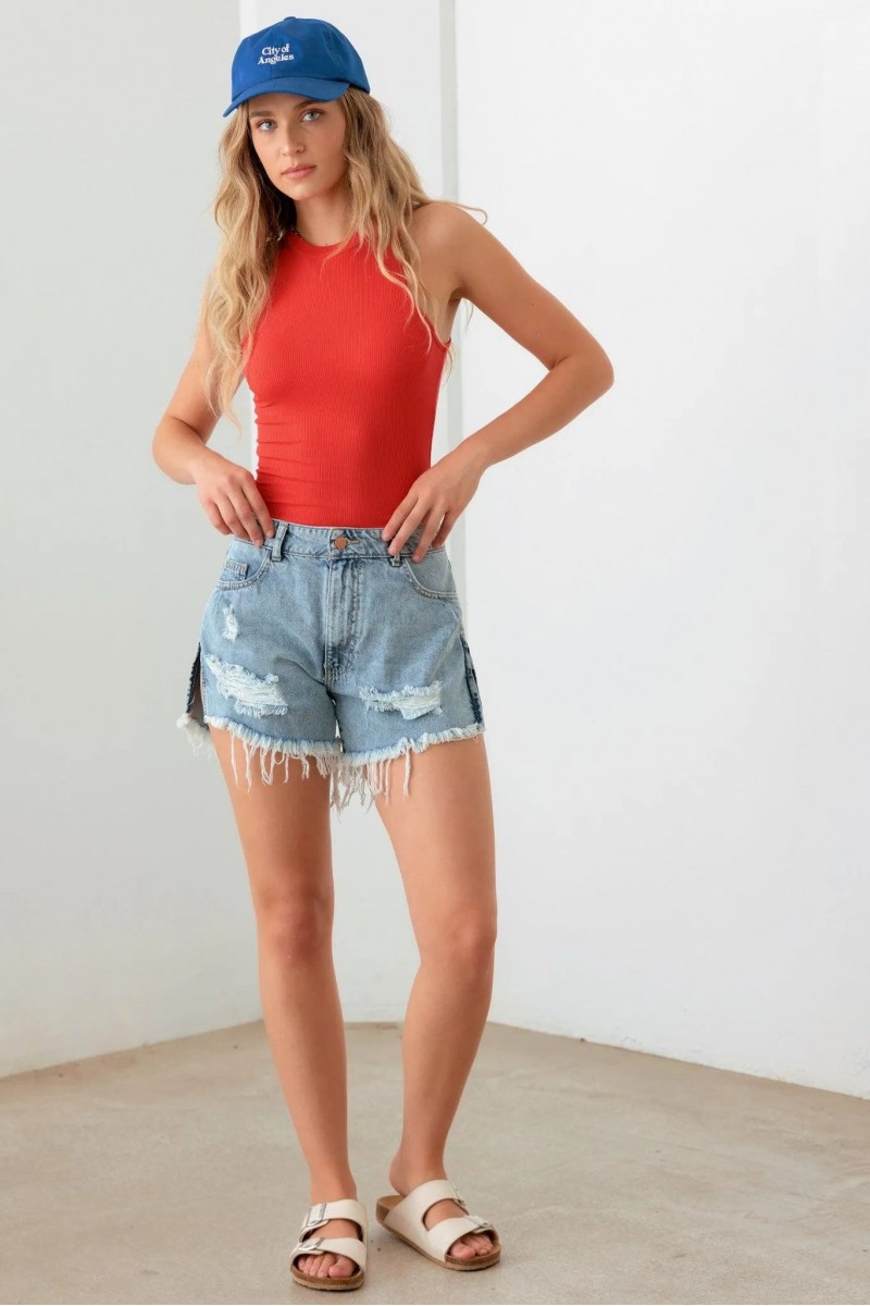 Women bodysuit: ribbed pattern, sleeveless, round neck, cozy, light weight, thong double snap closure, It's cute, trendy, and the perfect combination of comfy and stylish. 4th of July, America, USA. Get your must-have bodysuit today!
