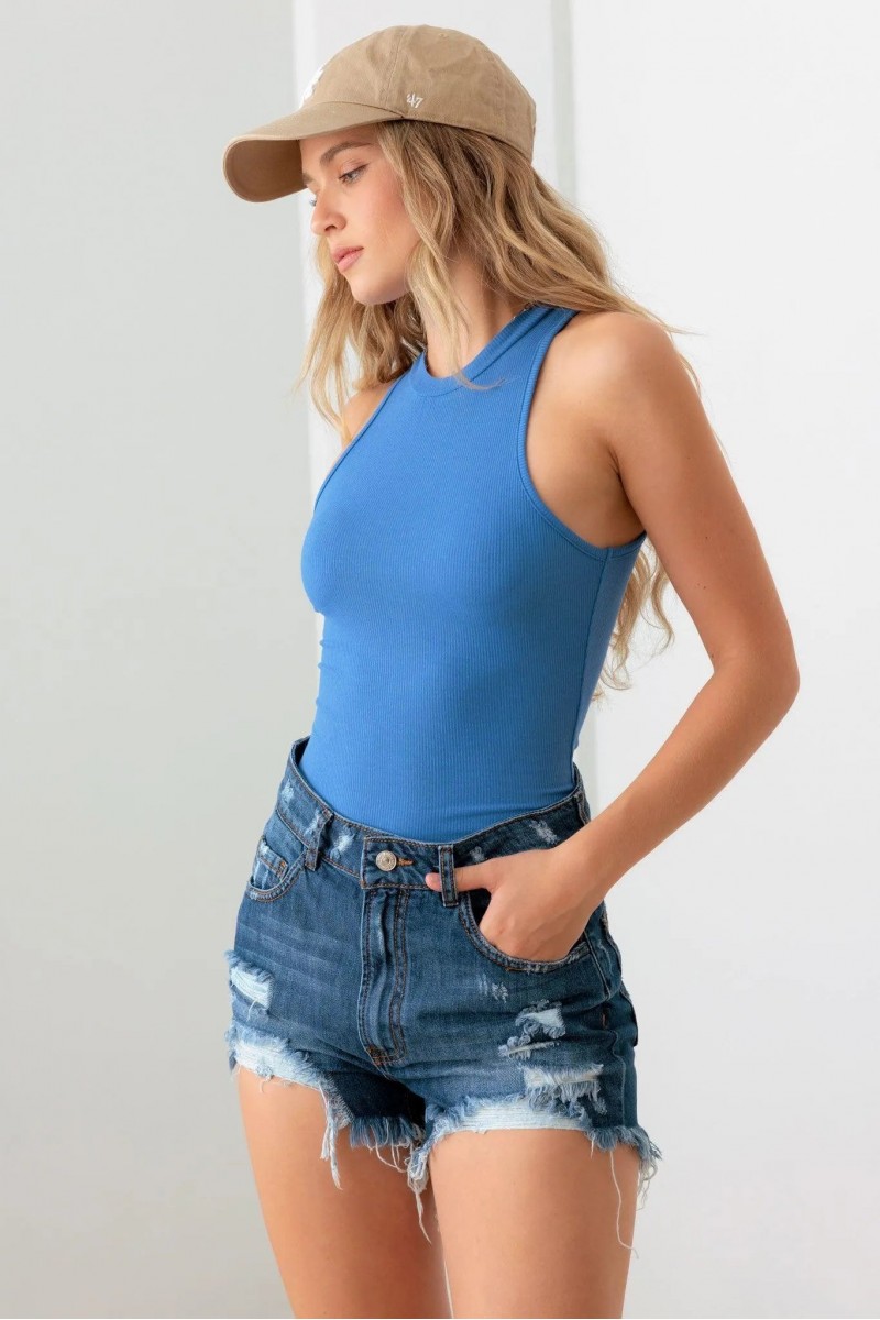 Create a sleek and sophisticated look with our Sleeveless Ribbed Round Neck Bodysuit. The seamless design and ribbed fabric provide a luxurious feel, while the round neck and sleeveless design add a touch of elegance. Perfect for layering or on its own, this bodysuit is a must-have for any wardrobe.