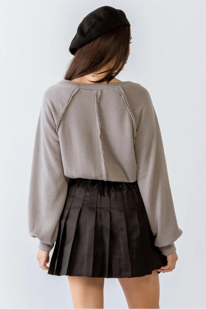 Grey Inside-Out Detail Balloon Long Sleeve Crop Top
