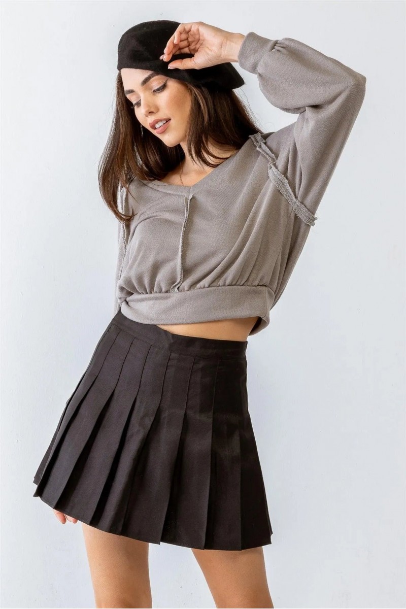 • Product Code: Grey Inside-Out Detail Balloon Long Sleeve Crop Top