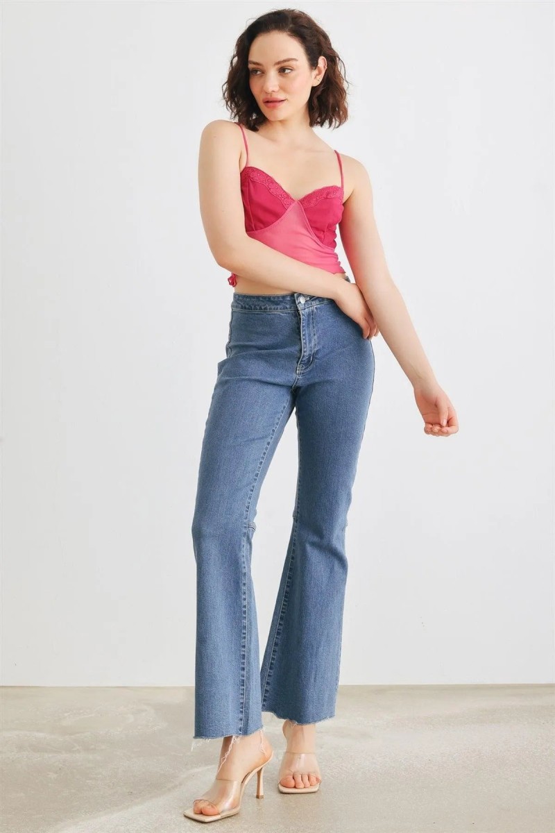 Experience the ultimate blend of sexy and girlish with our Magenta Fuchsia Mesh Lace Strappy Lettuce Hem Crop Top. The semi-stretchy material provides comfort and style, while the adjustable straps allow for a perfect fit. The see-through mesh and lined lace add a touch of cool and hot to any outfit. Get ready to turn heads in this must-have top!